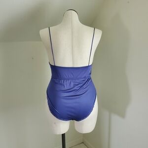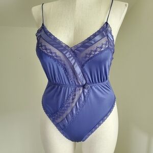 Vintage Lavender Silky Satin Spaghetti Strap Bodysuit Playsuit with Lace Trim
