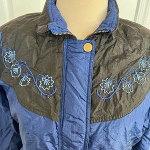 Vintage Lavon Women's 90s Windbreaker Floral Embroidered Full Zip Jacket Small