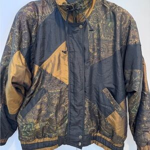 Vintage Lavon Women’s Black & Gold Copper Paisley Print Jacket Size Medium