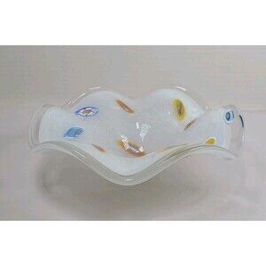 Vintage Lavorazione Murano Millefiori White Glass CenterPiece Bowl Italy 7.5"
