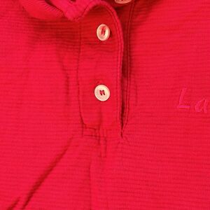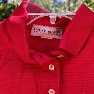 Vintage Lawman sleeveless polo shirt with embroidered Logo on the chest. The fabric is a beautiful red color and it has a ribbed textured feel.