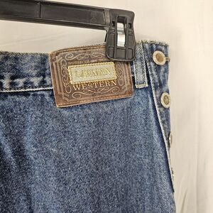 Vintage Lawman Juniors Straight Leg Mom Jeans 13 34 Buttons Medium Wash Tall Blue