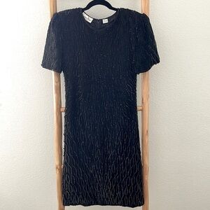 Vintage Lawrence Kazar New York 100% Silk Sequins & Beaded Cocktail Dress 0044