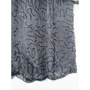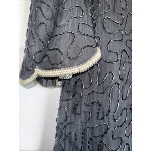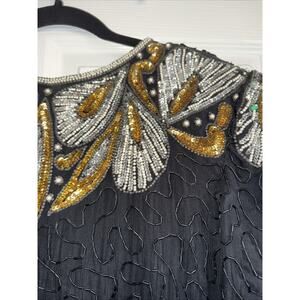 Vintage Lawrence Kazar Sz L Beaded Silk Top Black Gold Silver Embellished Party