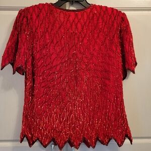 Vintage Lawrence Lazar Red Sequin Beaded Silk Blouse