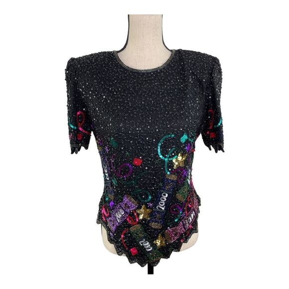 Vintage Lawrence Kazar Y2K New Year’s Sequin Beaded Silk Top Sz M