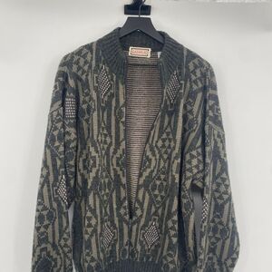 Vintage Lazarus Sweater Mens Large Geometric Aztec Pattern Wool Blend Chunky Zip