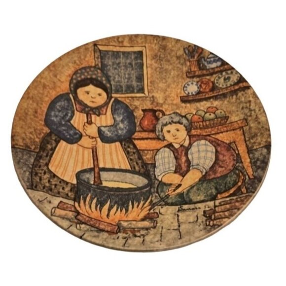 This vintage Lazzaro wall plate features a charming hand-painted Italian farm kitchen scene. Perfect for adding a touch of rustic elegance to your home decor. Ideal for collectors or as a unique gift.