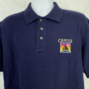 Vintage Le Best Cancun Embroidered Men’s Size Large Navy Blue Short Sleeve Polo