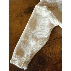 Vintage Le Mine Baby Cardigan White With Floral Embroidery & Yellow Buttons 3mth