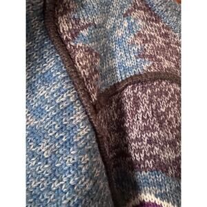 Step back in time with this authentic Vintage Le Roy Knitwear sweater in size Medium (M)! This eye-catching piece showcases a vibrant multi-color geometric knit pattern in shades of grey, blue, brown, purple, and white. Its bold, abstract design with Southwestern-inspired or Aztec-inspired motifs and distinctive colorblocking makes it a true statement piece.