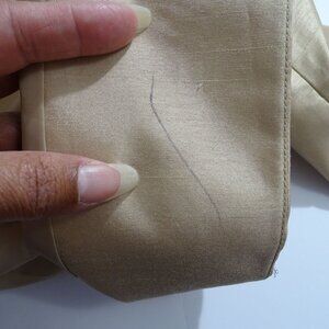 Pre-owned...There is a pen mark on the front inside. There is some light discoloration on the crease of the collar. See last 2 pictures for these flaws.