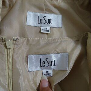 Vintage Le Suit 2 pc Gold Dress and Open Front Jacket Formal Women Size 12 FLAW