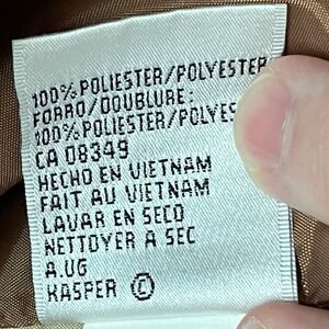 The Vintage Le Suit Women's Size 14W Brown Textured 2-Button Blazer is a stylish and versatile piece suitable for various occasions such as travel, parties, casual wear, formal events, work, and business meetings. This classic blazer features a notch lapel, long sleeves, and a single-breasted cut with two buttons. Made of polyester, it is lined and designed in a regular fit. Perfect for the fall and spring seasons, this blazer is a timeless addition to any woman's wardrobe, offering both quality and sophistication.