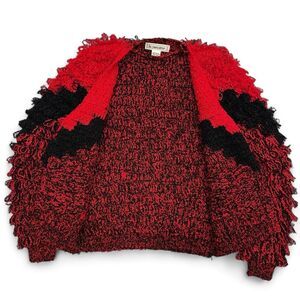 Vintage Le Sweater Shaggy Loop Cardigan L Boho Quirky Kitschy Punk Goth Rockstar
