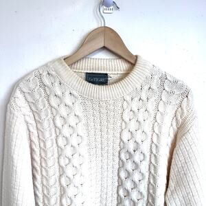 Vintage Le Tigre Fisherman Mens Sweater Size LT Cream Chunky Cable Knit Coastal