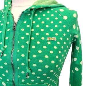 Vintage Le Tigre Lime Green Dotted Hoodie Zip Up Sweater Womens S