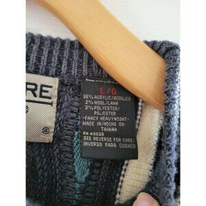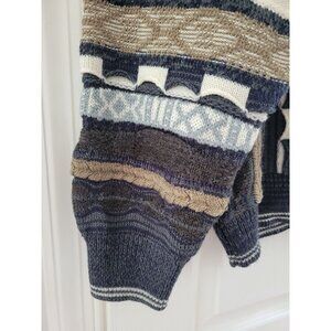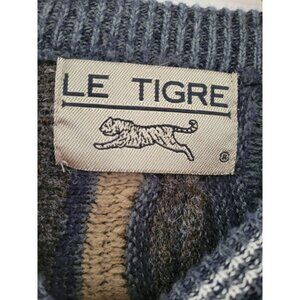 Vintage Le Tigre Mens Blue Multi-Color Sweater 3D 80s Cosby Grandpa baggy