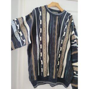 Vintage Le Tigre Mens Blue Sweater 3D size Large 80s Cosby Grandpa Textured