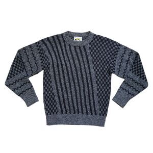 Vintage Le Tigre Sweater Mens Medium Gray Geometric Knit Crewneck 90s