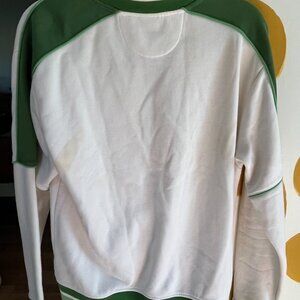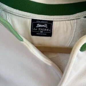 Men's Size Medium Cream and Green track jacket. Has some yellowing spots. Price is reflective of current quality.