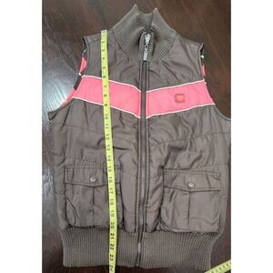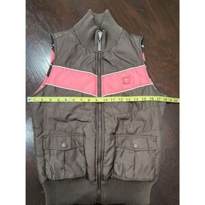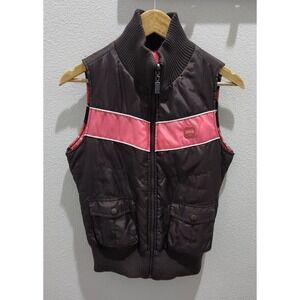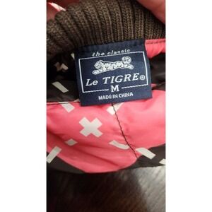 Vintage Le Tigre Women Reversible Puffer Vest Pink Argyle Y2K Mock Neck M