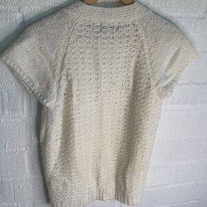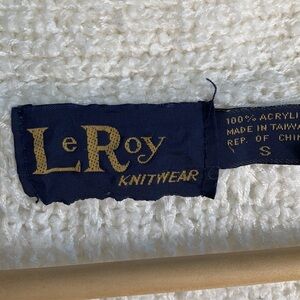 Vintage LeRoy Knitwear Acrylic Open Front Cream Knit Cardigan Sweaters sz S