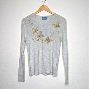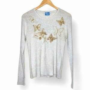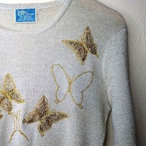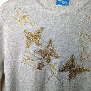 Vintage LeRoy Knitwear Metallic Silver Gold Butterfly Sweater