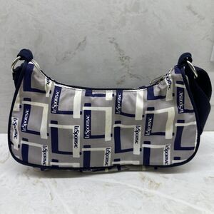 Vintage LeSportsac Blue/Gray White Crossbody Handbag Lightweight Nylon 90s