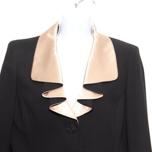 Vintage LeSuit Satin Ruffle Collar Black Suit skirt set Size 8