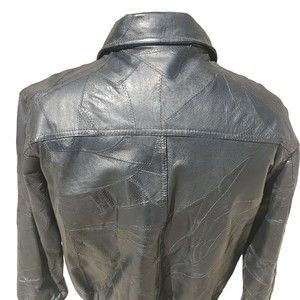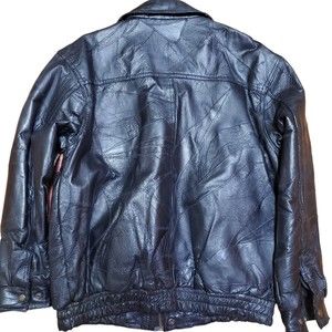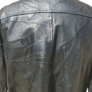 LeWorld Fine Leathers Black Biker Jacket Medium Leather Bomber Patchwork Coat.