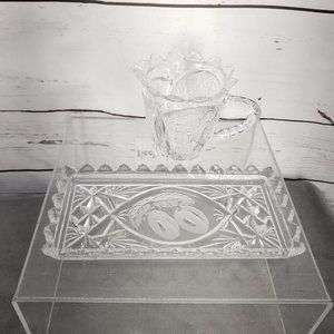 Vintage Lead Crystal Creamer & Tray W/Cherry Grape Etching
