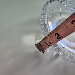 This exquisite vintage trinket candy dish features intricate etched wheel-cut daisies and leaves on lead crystal glass, perfect for adding elegance to any space. Ideal for holding candies or small treasures.