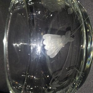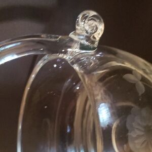 Hand Blown Clear Glass Basket Etched with Flower Design on one side