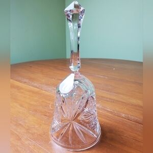 Vintage Lead Glass Bell, Cut Swan and Starburst Design, 7.25" Tall