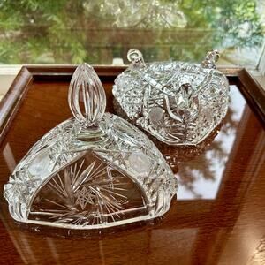Vintage Leaded Cut Crystal Footed Compote Candy Dish with Lid