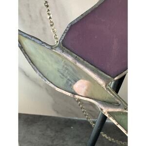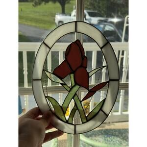 Vintage Leaded Stained Glass Oval Window Pane Iris Suncatcher