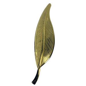 Vintage Leaf Brooch 2 3/4"h Goldtone Textured Pin