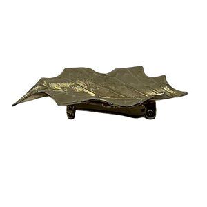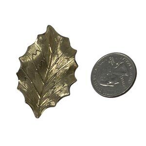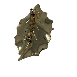 Vintage Leaf Brooch Brushed Gold Tone Engraved Veins Fall Pin