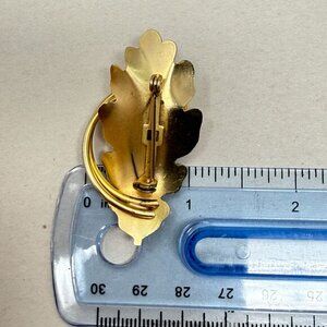 A stunning vintage leaf brooch, featuring a gold-tone finish and an imitation pearl. Perfect for adding a touch of mid-century charm to any outfit.