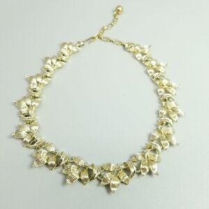 Vintage Leaf Design Gold Tone Panel Collar Necklace, Adjustable Hook Clasp