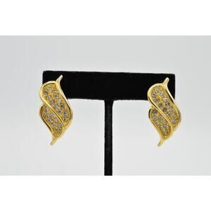 Vintage Leaf Earrings Shiny Pave Rhinestone Crystal Gold Dangle 1980s 9C