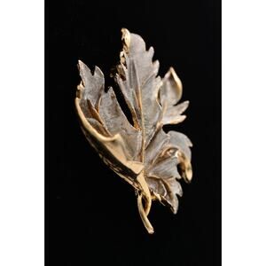 Vintage Leaf Pin Brooch Dark Silver Gold Textured Heavy Chunky 1980s BinAP