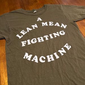 Vintage Lean Mean Fighting Machine Mens Olive Green T Shirt single stitch Sz Med