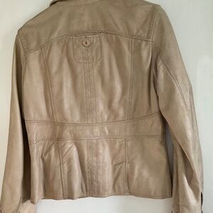 This jacket is lined. It has a very 70’s vibe to it. Cream/light tan colored.
