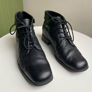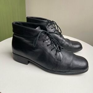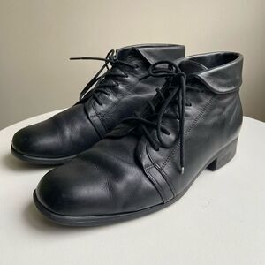 Vintage Leather Ankle Lace Up Booties Ladies 9 US Black 90s Y2k Indie Fairycore Work Clubwear School
