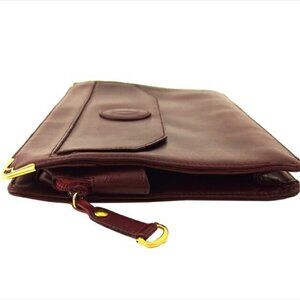 Vintage Leather Bag Clutch Purse with Brass Snap Closure and Built-in Brass Mirror Vinyl interior Clutch Purse Vtg 1960s 70s Case with Mid century modern shape to it built in brass keychain clip. Vintage bags purses small case clutch flat bag with mirror and keychain. Just a gorgeous unique bag never seen one like it. Leather exterior doesn't seem like its vinyl as it looks and feels like real leather. Interior of bag is definitely tan colored vinyl. No tags on it except for the Dandy brand Zipper (Dandy Zipper Inc 1969). Beautiful Round mirror is built in underneath the flap. Bags for women or men or unisex. Good condition considering age, outside is mint condition can see some small scratch or wear on some of the brass but it is minimal and all snaps work. Measures 10 inches x 7 inches