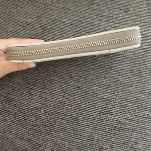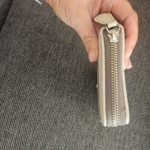 This elegant cream wallet is perfect for organizing your essentials with style. Its sleek design and neutral color make it a versatile accessory for any outfit. In excellent pre-owned condition, this wallet is made of genuine leather.