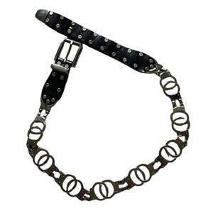 Vintage Leather Belt Handcuff Chain size 41 inches Unisex Biker Goth Punk Scene