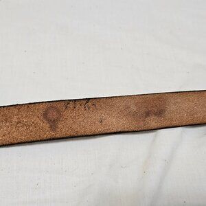 Please see pictures for condition and measurements. Belt comes from an estate where the gentleman smoked cigars. Belt shows HEAVY wear from age and use. Preowned- overall fair condition.